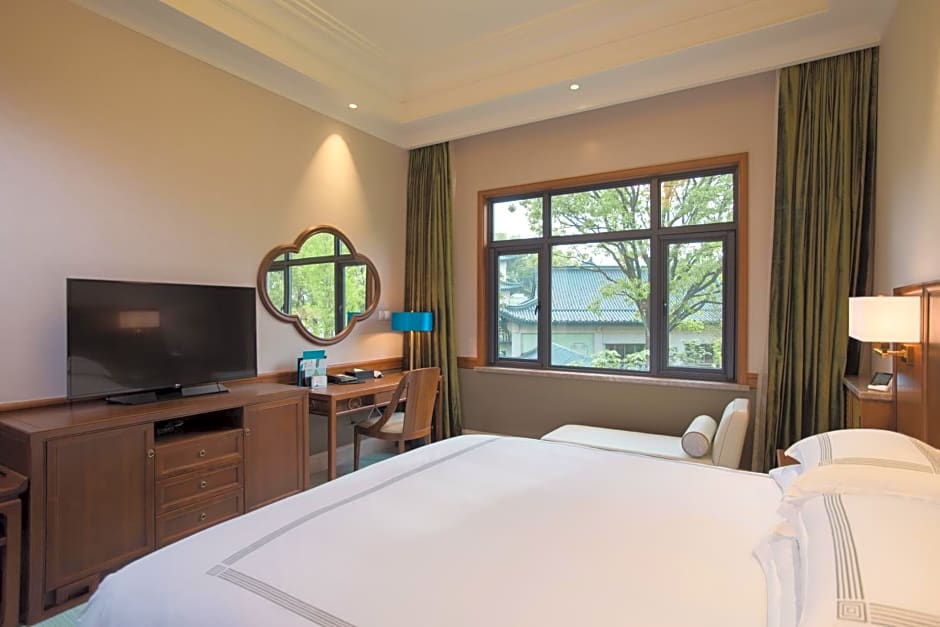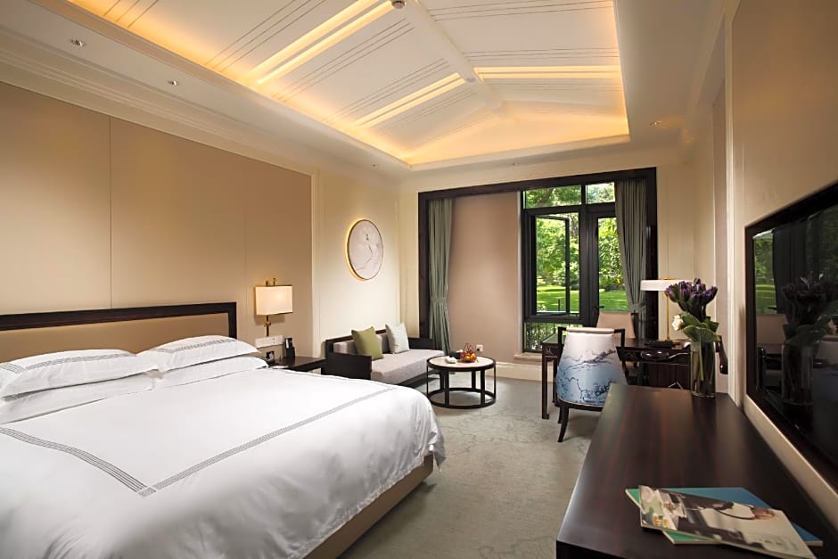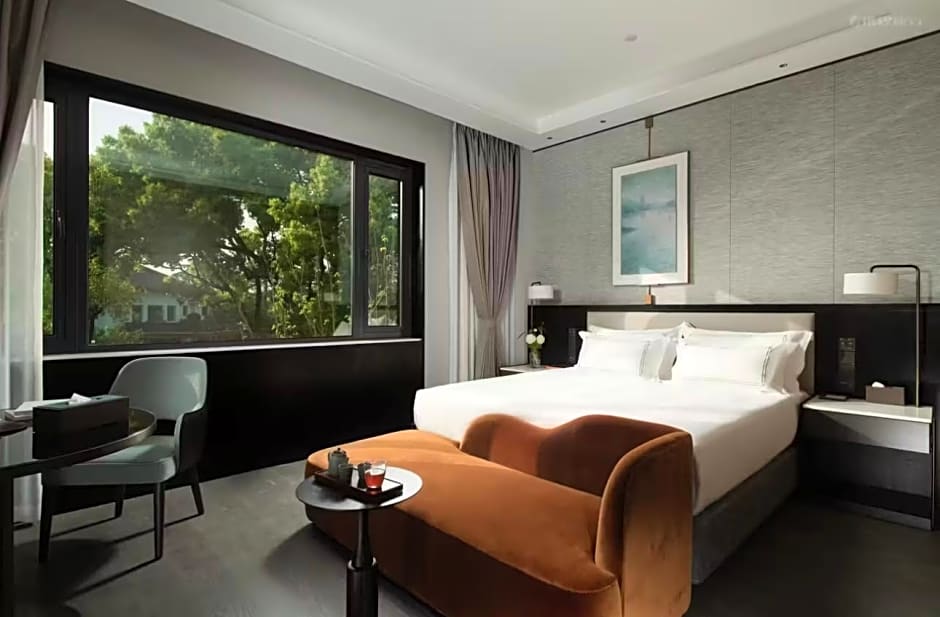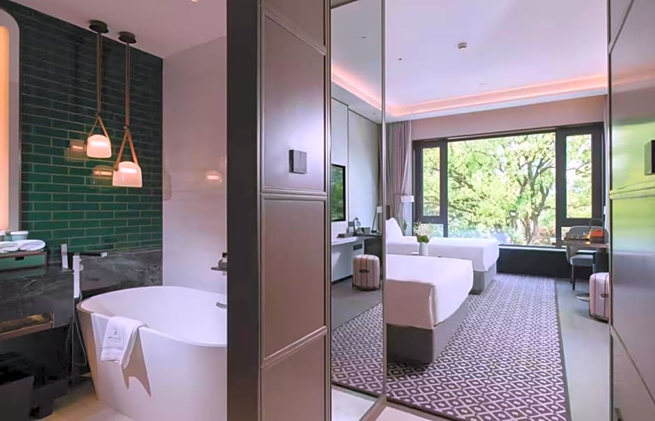 After a day of exploring Hangzhou’s sights, the indoor heated pool with a shallow end and a view invites a relaxing dip, and the on-site bar complements evenings with a drink. The terrace and garden views provide a serene backdrop for a sunset moment, rounding out the stay with a touch of tranquility.