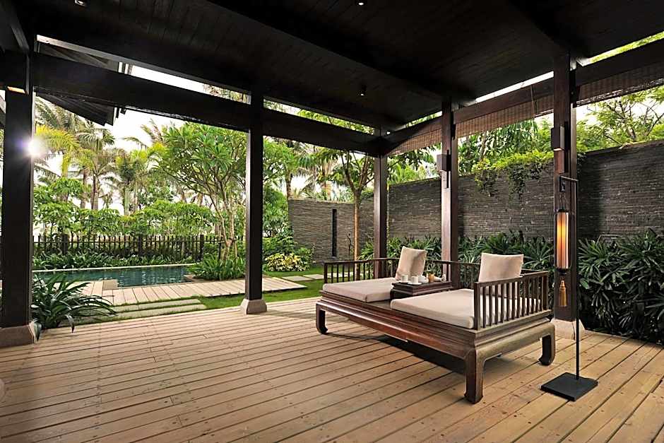 The entire stylish villa comes with a private garden, an private bathroom and a swimming pool. It comes with 2 bedrooms and 1 living room. Decorated in the style of Tang and Han dynasties, villa features iPod touch, iPad and iHome. Free Wi-Fi is also provided.