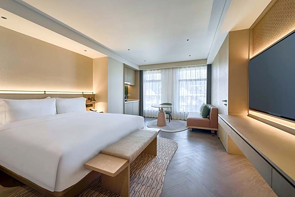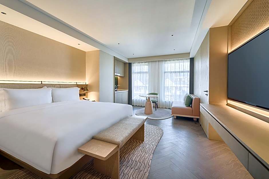 A diverse lineup of accommodations ranges from Studios and city-view options to Junior Suites and Deluxe Suites, including a 2-bedroom Deluxe Suite and a 2-bedroom Family Suite. City views appear in several choices, and some suites feature club lounge access for an extra touch of luxury.
