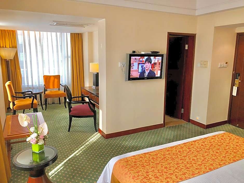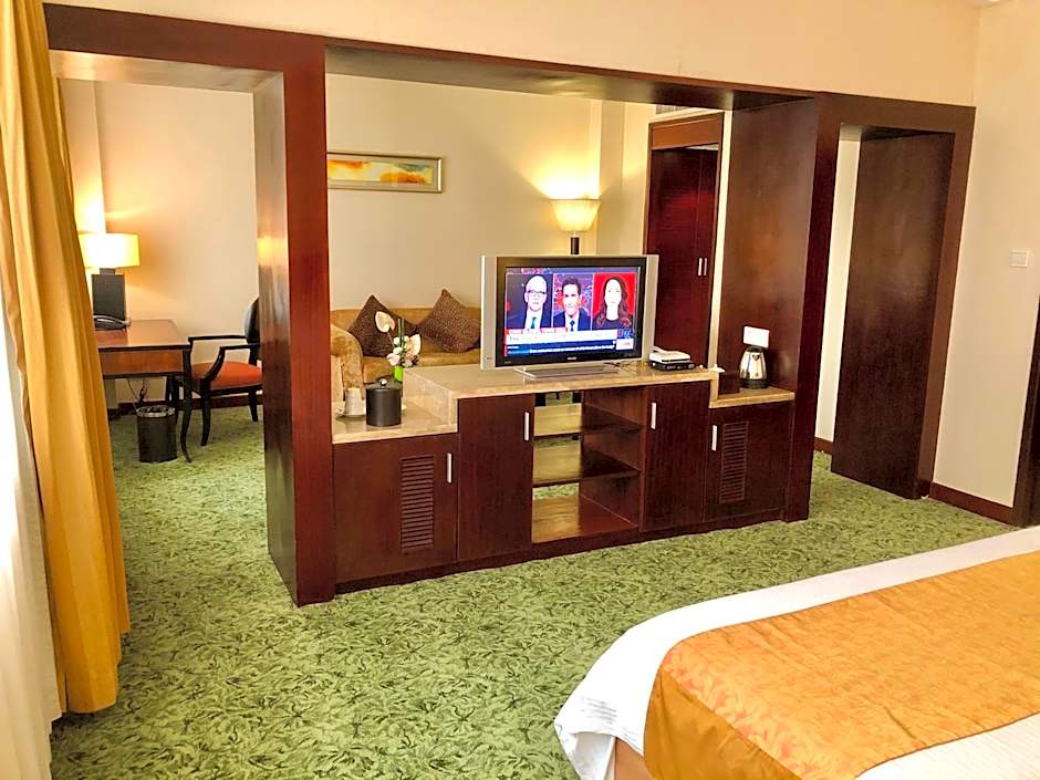 Spacious suite comes with a mini-bar, a bathtub and ironing facilities. It features a seating area with sofa and a flat-screen TV.