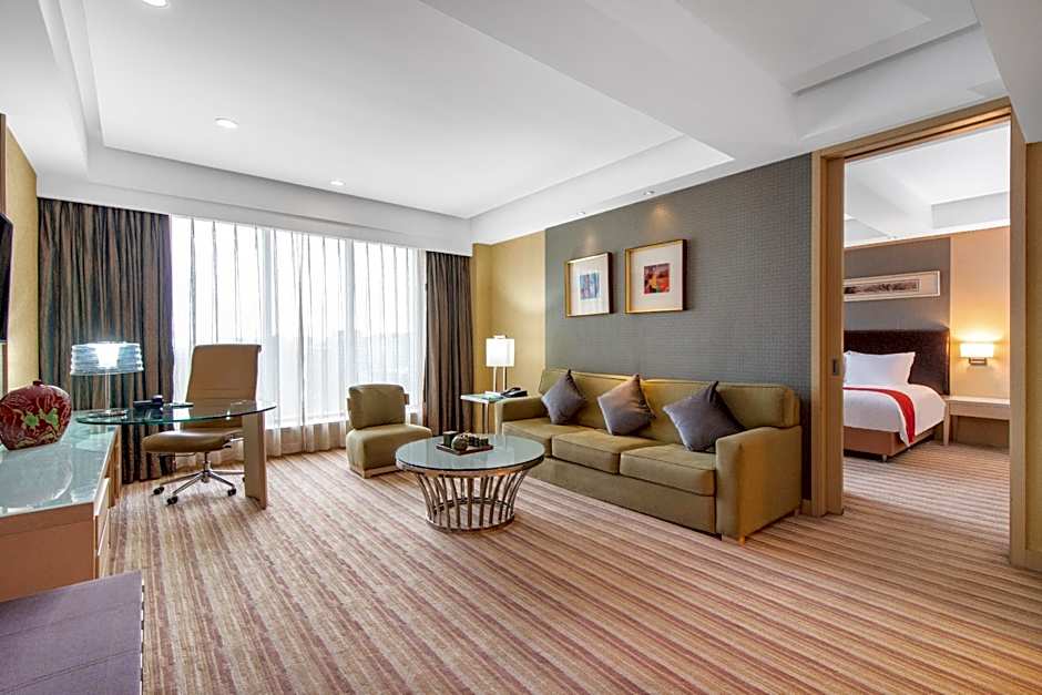 Qingdao Parkview Holiday Hotel offers a variety of rooms including Executive Twin, Superior Twin, Superior Double, Executive Double, and Deluxe Double rooms, each accommodating 2 adults and some with the option for 2 children. Smoking is not allowed in any of these rooms, which feature Twin or Double bed setups in a room size of 301 sqft. Additionally, the hotel provides Suite options like Deluxe Suite and Executive Suite with larger room sizes, accommodating 2 adults and children, offering amenities like a Sofa Bed, Queen size bed, and a room size of 657 sqft to 721 sqft.
