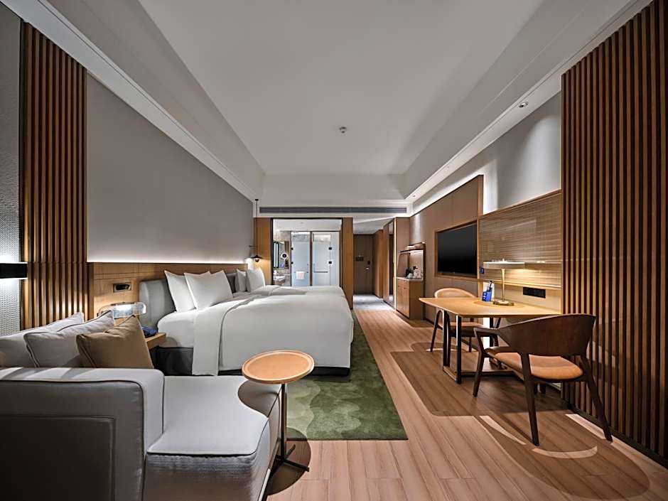 Doubletree By Hilton Lingshui Hot Spring offers a variety of elegantly appointed rooms to cater to every traveler's needs. Guests can choose from Standard Rooms, Deluxe Rooms, and expansive Suites, each exquisitely designed to provide the utmost comfort and relaxation. Whether you are traveling solo, as a couple, or with family, there is a perfect accommodation option to suit your preferences.
