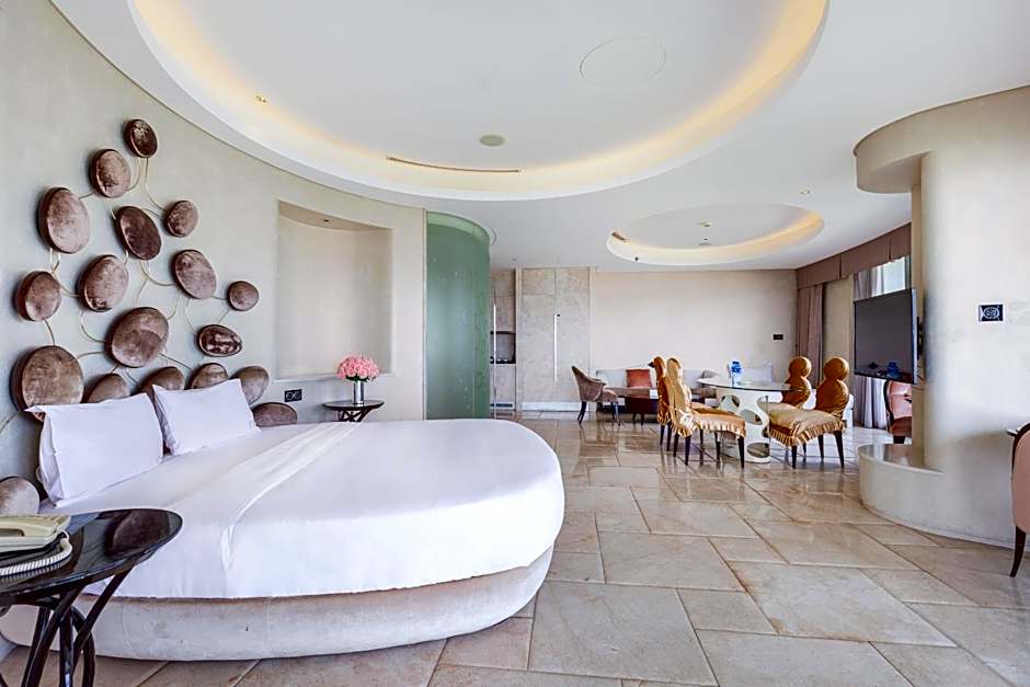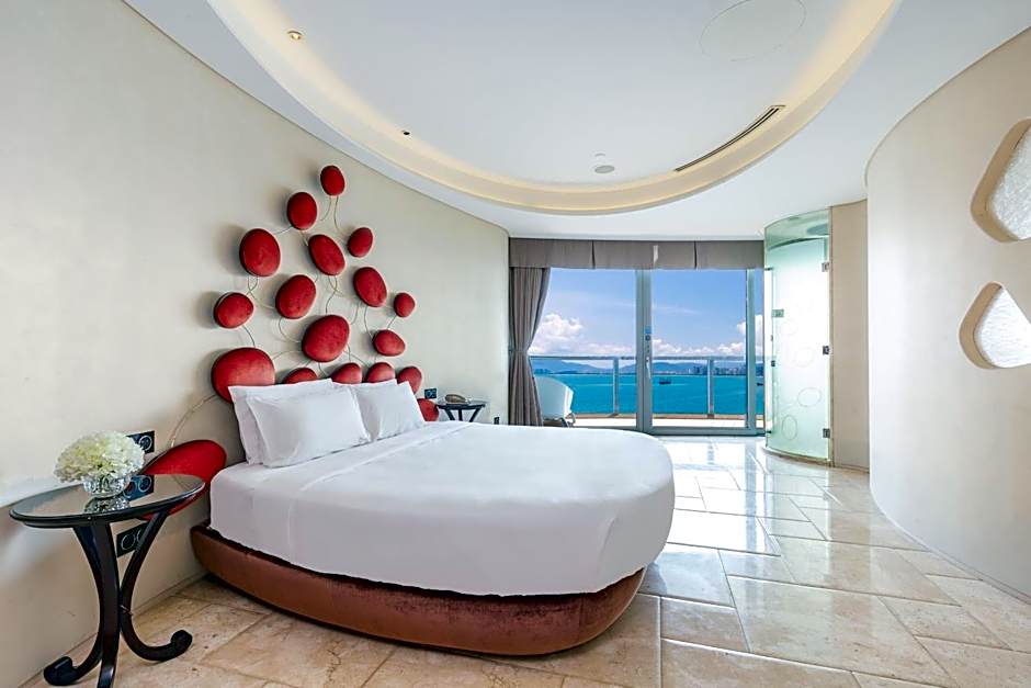 Enjoy stunning ocean views from your spacious King Room, featuring a private balcony and a luxurious hot tub. With a comfortable king-size bed and exclusive amenities such as a flat-screen TV and air conditioning, this room is perfect for a relaxing beach getaway.