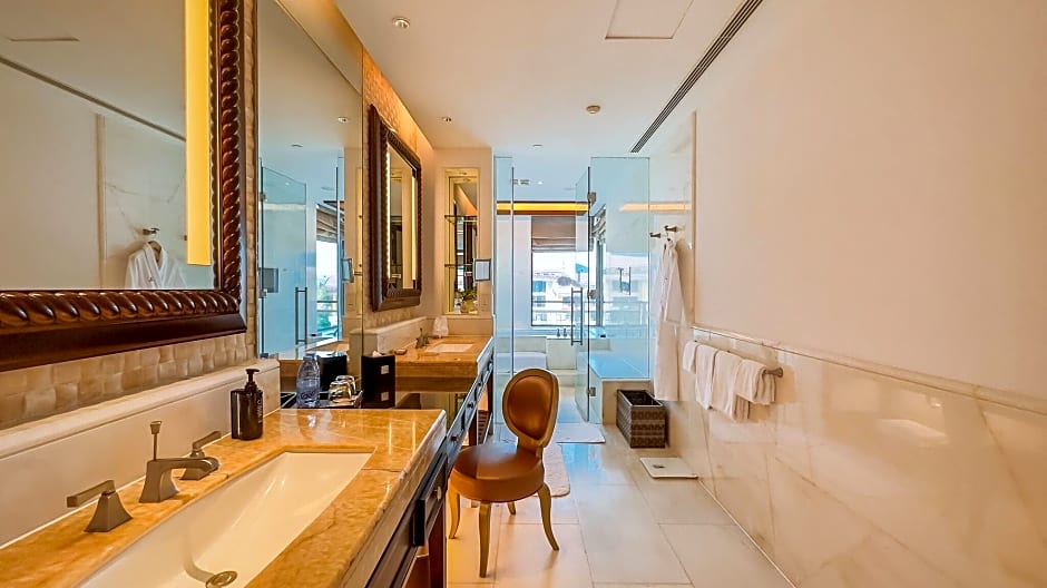 Guests at The St. Regis Sanya Yalong Bay Resort can enjoy a variety of leisure amenities during their stay. They can spend their time at the water park, private pool, and beachfront, which offer relaxation and fun. The resort also features an outdoor swimming pool, with a separate kids' pool for younger guests to enjoy.