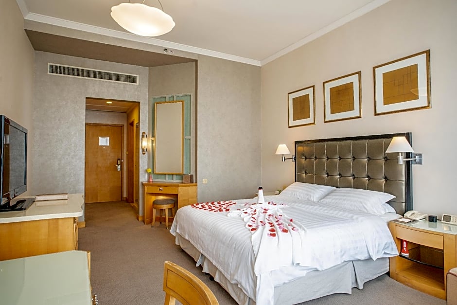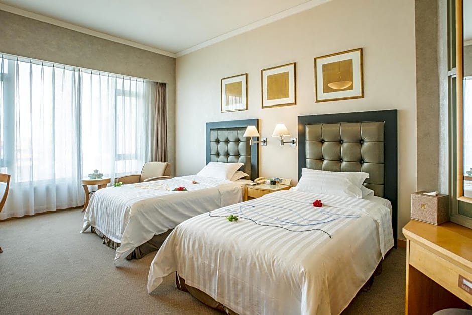 Shantou Junhua Haiyi Hotel offers room types such as Deluxe Twin, Suite, Premier Queen, Premier Twin, and Executive Queen rooms. These rooms have a room size of 431 sqft each and do not allow smoking. They can typically accommodate 2 adults and 1 child with bed options like Twin, Queen, or King size beds.
