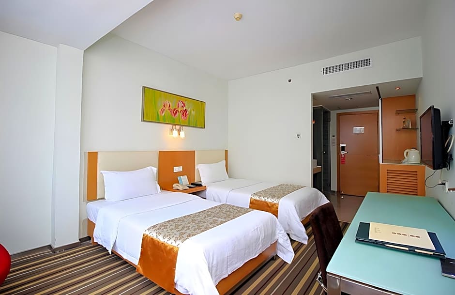 A wide range of room types is available, including Deluxe, Queen, Twin, Japanese Style Suite, Honeymoon Double Room, and Business Suite, among others. This variety provides options for different travel styles and group sizes, all within one convenient Shenzhen address.