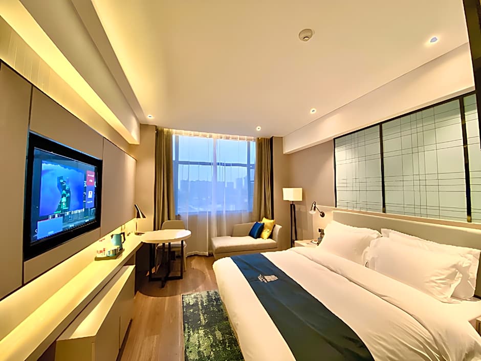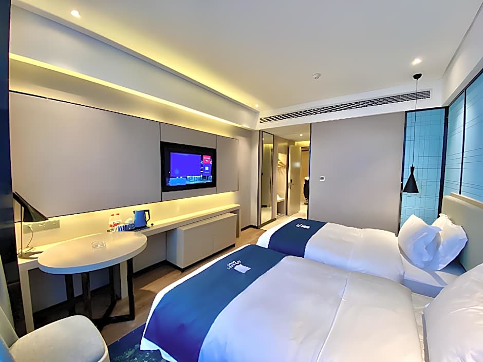 Room options at Echarm Hotel Wuhan Hannan cover a range of needs, from practical to comfortable. The Deluxe room comes with two twin beds in 216 square feet of space, while a Twin Room offers 216 square feet with a single twin bed. For guests who prefer a bit more space, the Deluxe Double Room provides 216 square feet with a Queen bed, and the Room With City View offers 270 square feet with a Queen bed. For extra room to stretch, the Executive Suite spans 485 square feet and accommodates two adults and a child.