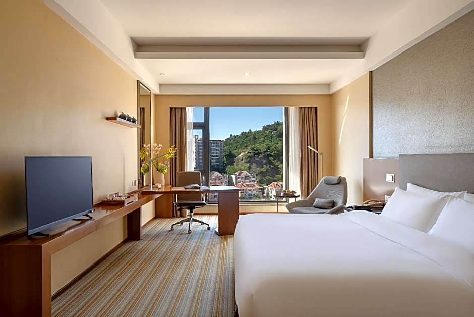 Mountain views frame a versatile lineup of rooms, from Deluxe Executive with King bed (484 sqft) to Deluxe Executive Twin (485 sqft), plus the Twin Room (431 sqft) and the expansive Executive Suite (1023 sqft). Non-smoking options are available across these layouts, ensuring comfortable space whether traveling solo, as a couple, or with a small family.