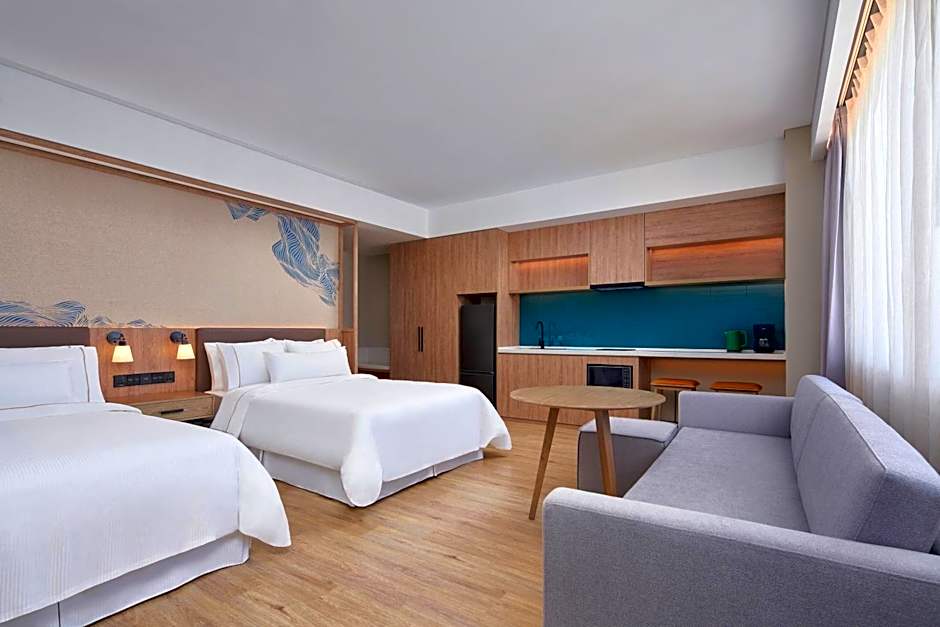 Room options span a range from the Apartment Suite at 947 sqft with a king bed to Studio configurations around 484-485 sqft in King or Twin formats. These options accommodate varying group sizes, with some studios hosting up to five adults and three children. For larger parties, the Suite, 1 Bedroom and Superior Suite offer generous layouts, each accommodating up to eight adults and five children and featuring a king bed.