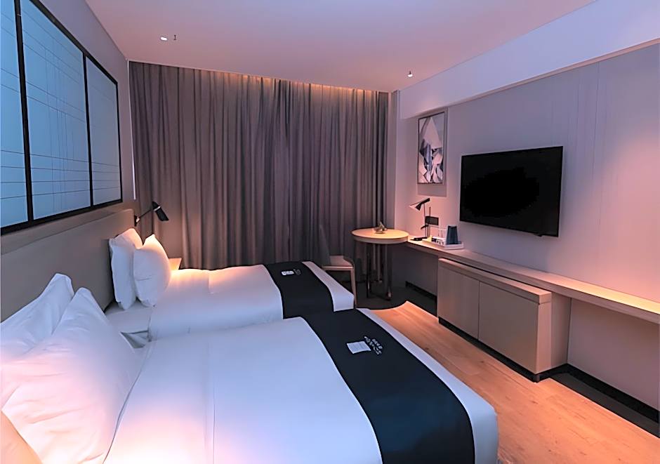 Guest rooms come in several configurations to suit different needs: Twin Room at 323 square feet accommodates 2 adults and 1 child with a single twin bed; Double Room, also 323 square feet, accommodates 2 adults and 1 child with a double bed; Yizun Suite at 485 square feet accommodates 2 adults and 1 child; Room - 2 Bed for 2 adults and 1 child; Room Selected At Check In for 2 adults. Cash is the only accepted payment method.