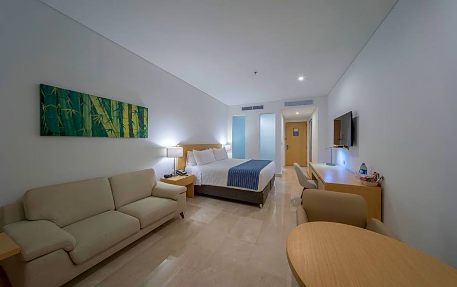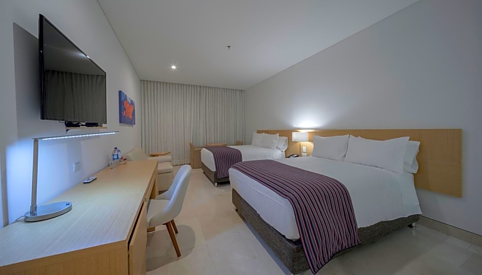 Two on-site dining venues ensure meal options after a day of exploring Barranquilla. Oasis / Terraza Piscina Oasis offers a family-friendly, traditional vibe with a diverse menu that spans American, Cajun Creole, Caribbean, Italian, pizza, seafood, local, and international dishes. The other option, RESTAURANTE GIRATORIO, specializes in seafood, local and international flavors with grill-BBQ highlights for those craving something hearty. After dinner, the atmosphere can glow with live music or performances, while streaming services (like Netflix) are ready for a laid-back night in. Free WiFi, a well-equipped fitness center, and complimentary access to a Turkish bath and sauna round out the leisure options.