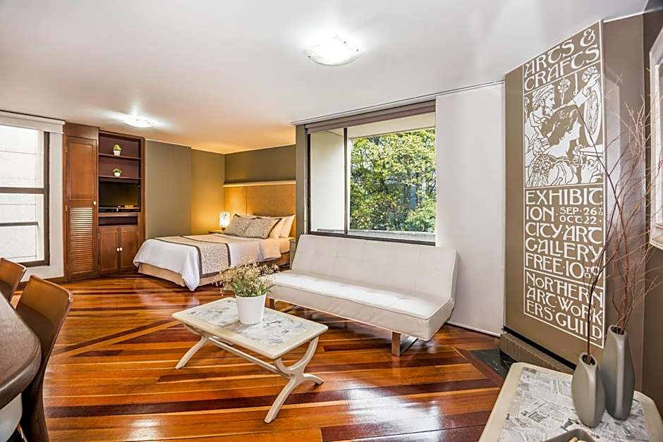 Welcome to Lloyds Apartasuites Parque 93, your delightful home away from home nestled in the heart of Bogota, Colombia! Priced from an unbeatable rate, this charming 3-star apart hotel invites you to unwind in one of its cozy suites featuring a private kitchen and all the essential amenities needed for a blissful stay. Located just 5.3マイル from the bustling city center, you'll have the perfect balance of tranquility and accessibility, allowing you to dive into the vibrant culture, nightlife, and culinary scene of Colombia's capital.