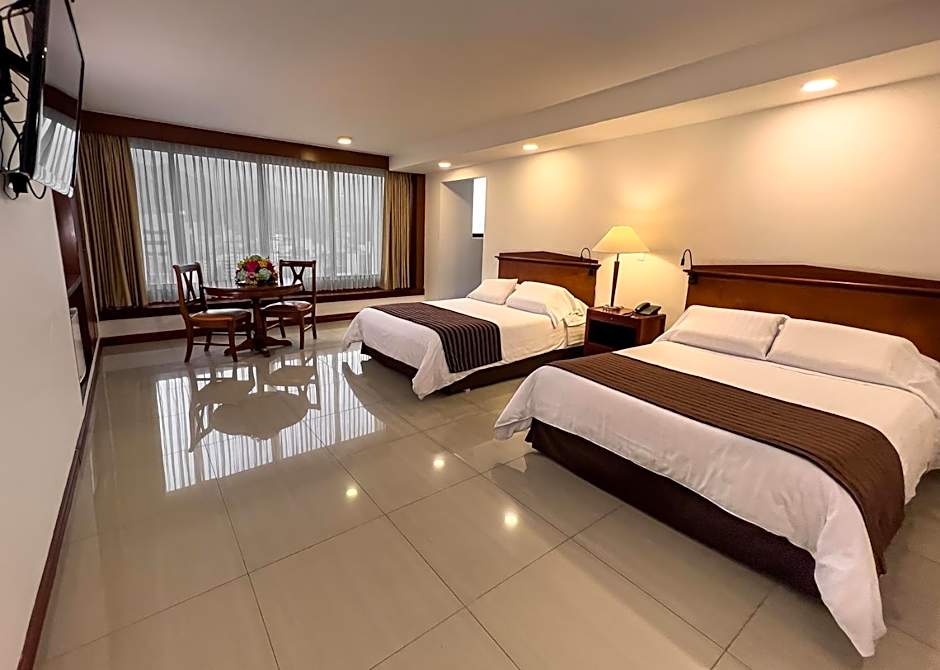 The Torre de Cali Plaza Hotel offers Premier Double Rooms, Executive Twin Rooms, Premier Twin Rooms, and Executive Double Rooms. All rooms are non-smoking and come with varying bed and room sizes. The Premier Double and Executive Double Rooms accommodate 2 adults and 1 child, while the Executive Twin and Premier Twin Rooms accommodate 4 adults and no children. The bed options include 1 Double bed or 2 Double beds.