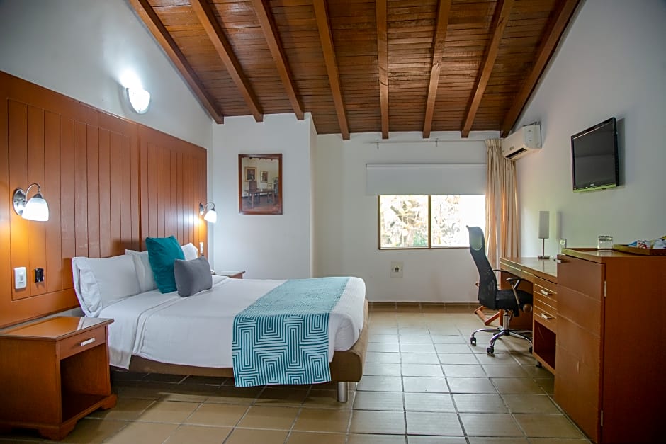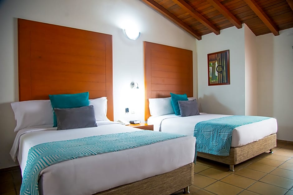 The Hotel Faranda Bolívar Cúcuta Resort offers various types of rooms. These include cabins with king beds and pool views, junior suites with king beds, junior suites with two queen beds, executive rooms with king beds, and executive rooms with two queen beds. Smoking is not allowed in any of these rooms. The rooms accommodate different numbers of guests, ranging from 2 adults and 1 child to 4 adults and 3 children.