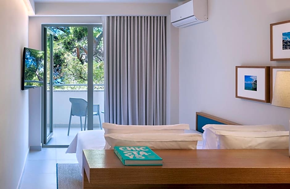 This air-conditioned double room features a balcony and satellite TV. It is set on the sea side of the hotel. Please note that extra beds are not available in this room type.