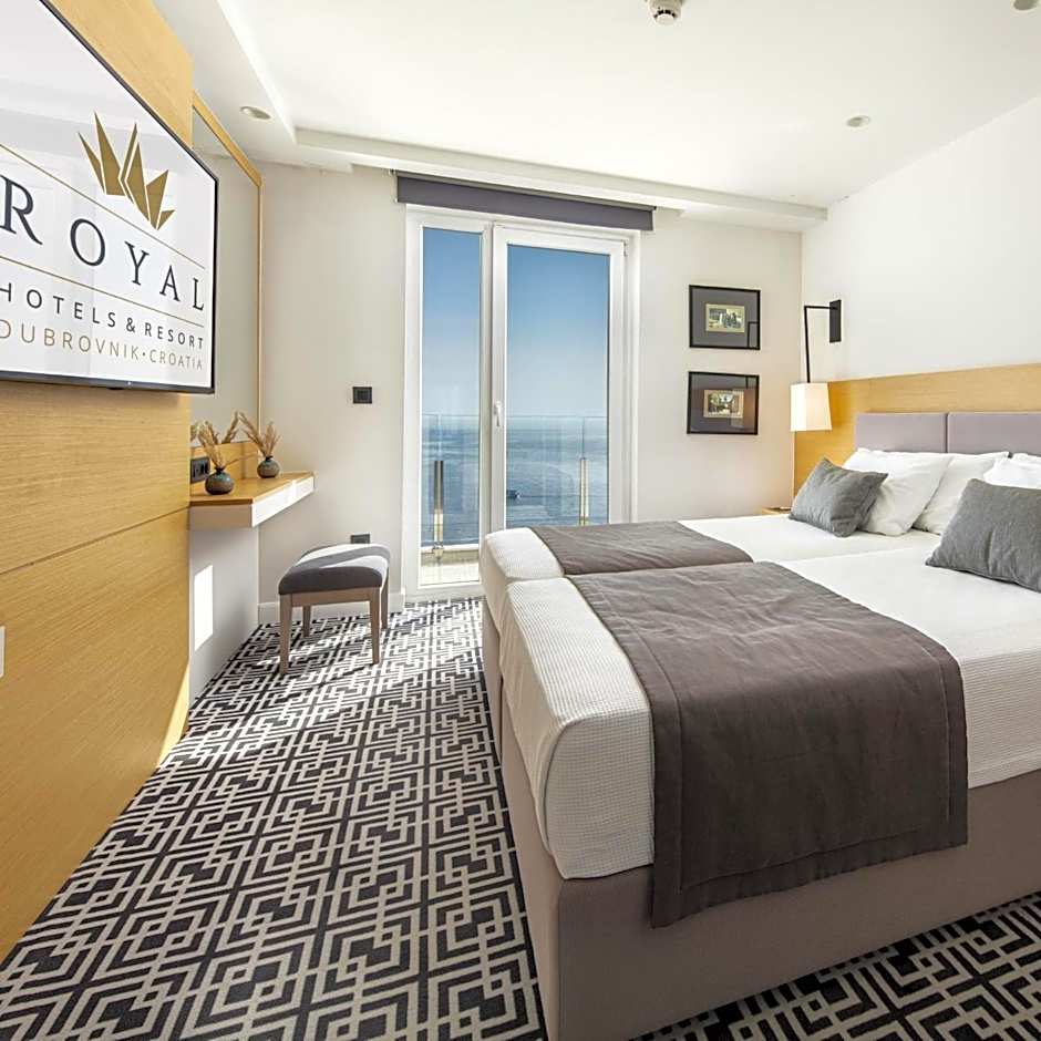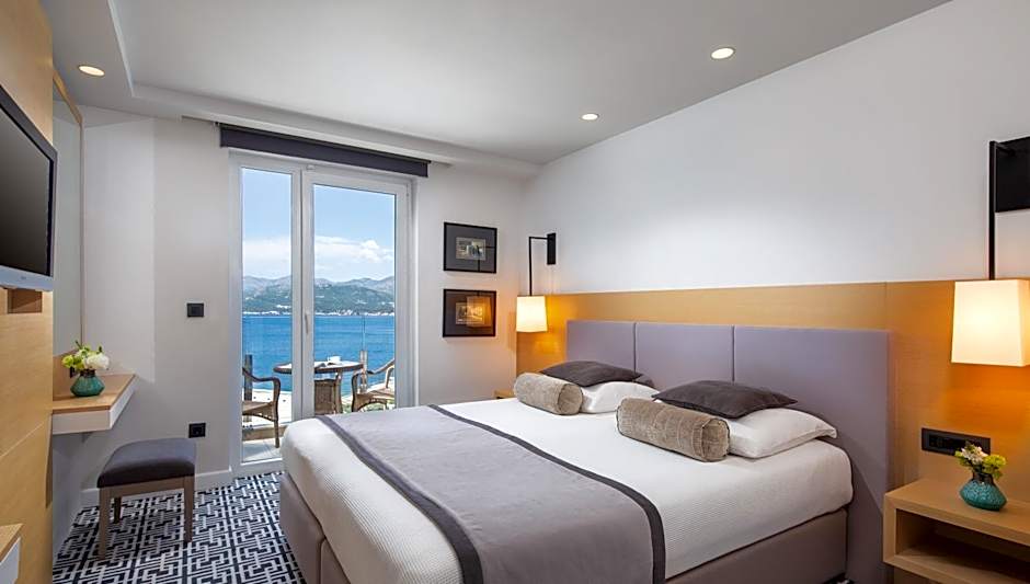 This room comes with a large double or two single beds. Air conditioning and satellite LCD TV are available along with a work desk and a mini-bar. Balcony with panoramic views of the Adriatic Sea and nearby islands.