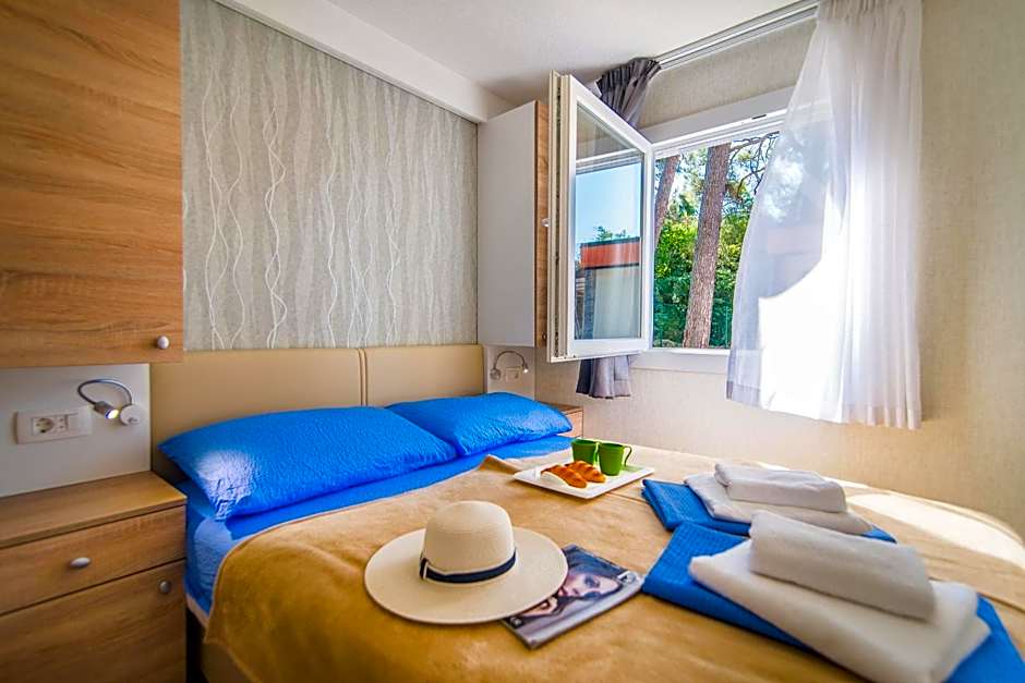 This air-conditioned mobile home is consisted of of 1 living room, 2 separate bedrooms and 2 bathrooms with a bath. Guests can make meals in the kitchen that is fitted with a refrigerator, a dishwasher, kitchenware and a microwave. Featuring a balcony with sea views, this mobile home also offers a tea and coffee maker and a flat-screen TV with satellite channels. The unit offers 4 beds.