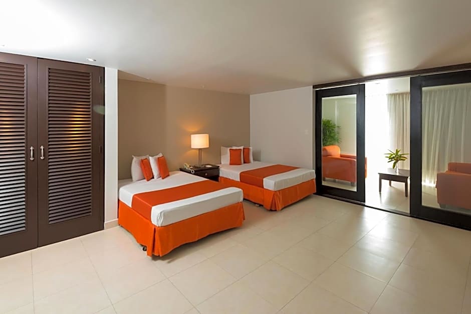 The maximum number of cribs, extra beds, and children allowed in existing beds can vary depending on the option booked.
