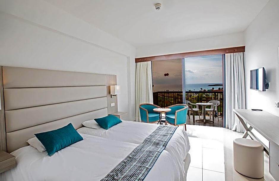 The Anmaria Beach Hotel & Spa offers a variety of room options. There are Standard Double or Twin Rooms with Side Sea View, Inland View, and Sea View. All rooms are non-smoking and have a size of 323 sqft. The rooms can accommodate 3 adults and 2 children and have a bed configuration of 1 double bed and 2 twin beds.