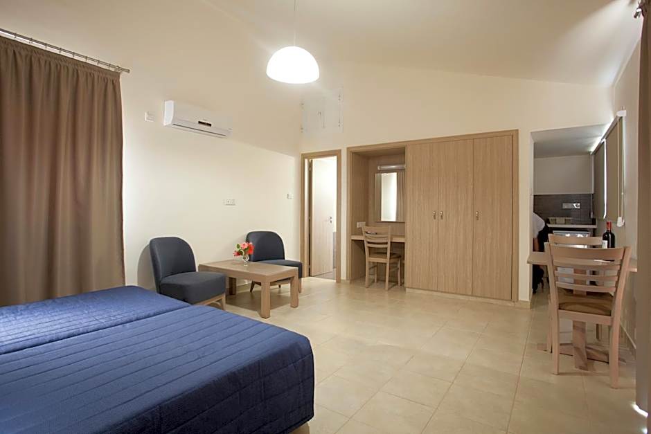Family-friendly features include a playground and kitchenette essentials, making self-catering easy. A garden setting with balcony and garden views adds to the relaxed Cyprus mood, creating a peaceful backdrop after days spent exploring the area. The well-equipped kitchenette presence complements apartment-style living for guests planning flexible, self-catered stays.