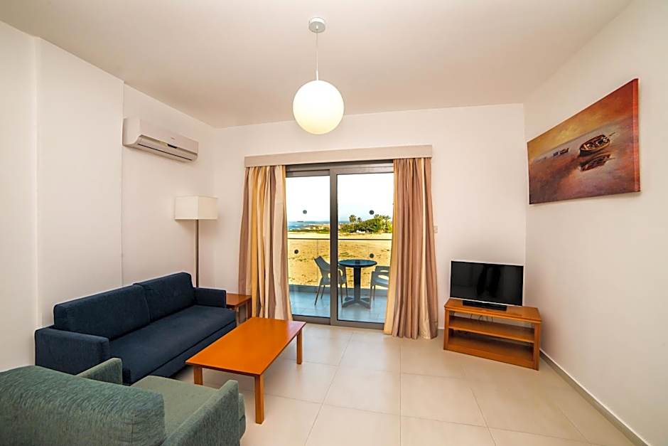 The hotel offers Superior Studios with both Inland and Sea Views, with a room size of 388 sqft, accommodating 3 adults and 2 children. The Superior One-Bedroom Apartments also come with Inland and Sea Views, with a room size of 441 sqft, accommodating 4 adults and 3 children. Smoking is not allowed in any of these rooms. The bed options include Twin beds, Sofa beds, and in one of the apartments, a Double bed is also available.
