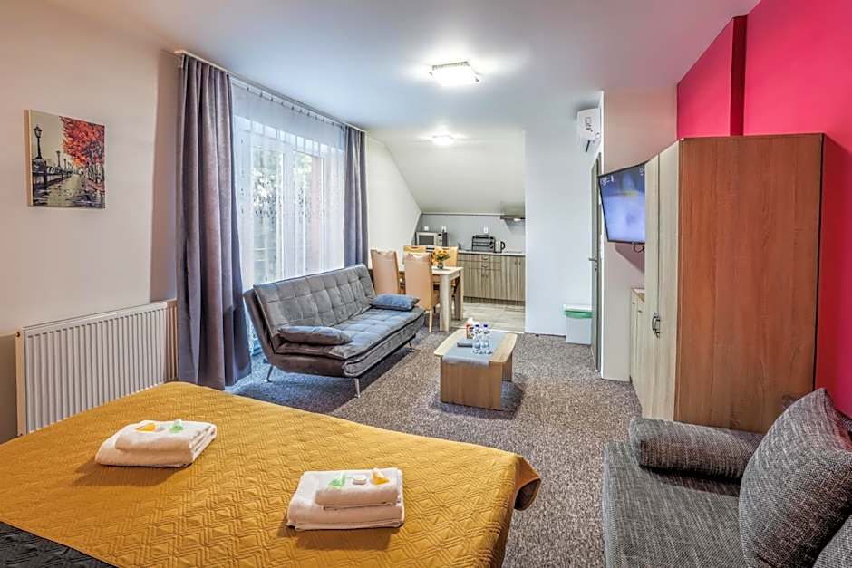 A range of room options caters to different plans and group sizes. An Apartment with Kitchen and an Apartment with Kitchenette provide self-catering space, with the latter capable of hosting larger groups (up to 10 adults and 6 children). For smaller parties, the Standard Room features a Queen-size bed and accommodates several guests, while the Ensuite Double Room, Deluxe, Double, and Family layouts offer flexible bedding and settings to suit various itineraries.