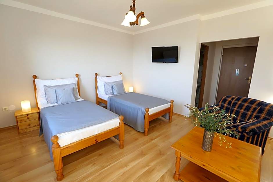 Offering free toiletries, this quadruple room includes a private bathroom with a shower. The quadruple room offers a flat-screen TV with satellite channels, a wardrobe, parquet floors, heating as well as garden views. The unit offers 3 beds.