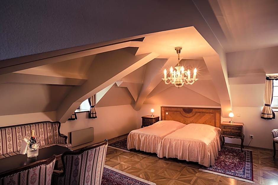 The Hotel Štekl offers a variety of rooms including Suites, Deluxe Double Rooms, Royal Suites, and Standard Double or Twin Rooms. Smoking is not allowed in any of the rooms. The occupancy for all rooms is 2 adults and 1 child, and the bed sizes range from Queen size to Twin beds.