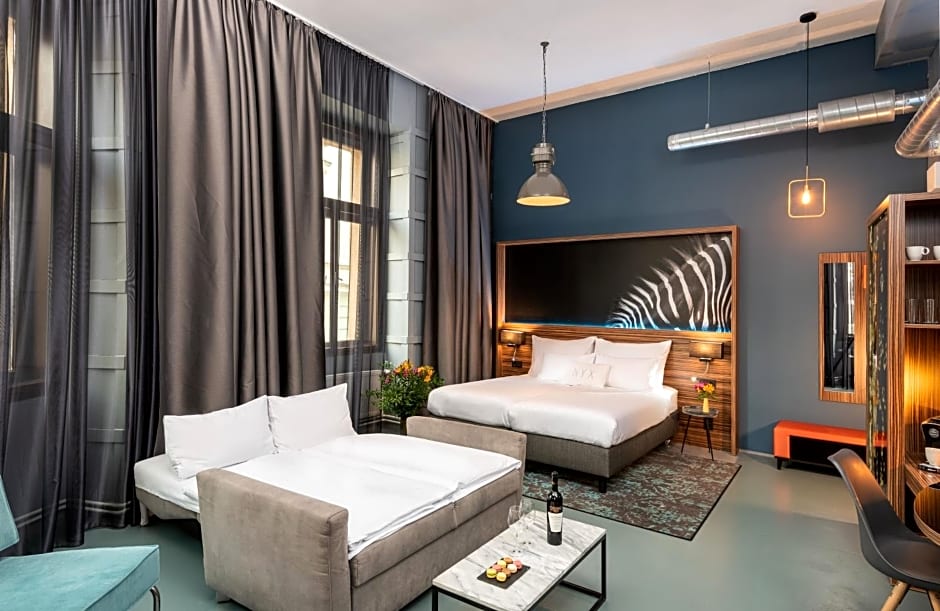 The NYX Hotel Prague offers a variety of rooms including Junior Suites, Comfort Rooms, Deluxe Quadruple Rooms, Deluxe Triple Rooms, and Double Rooms. Smoking is not allowed in any of the rooms. The rooms range in size from 172 sqft to 377 sqft. The accommodations vary, with some rooms accommodating up to 4 adults and 1 child, while others accommodate 2 adults and 1 child. The bed sizes range from double beds to queen size beds, with some rooms also including sofa beds.