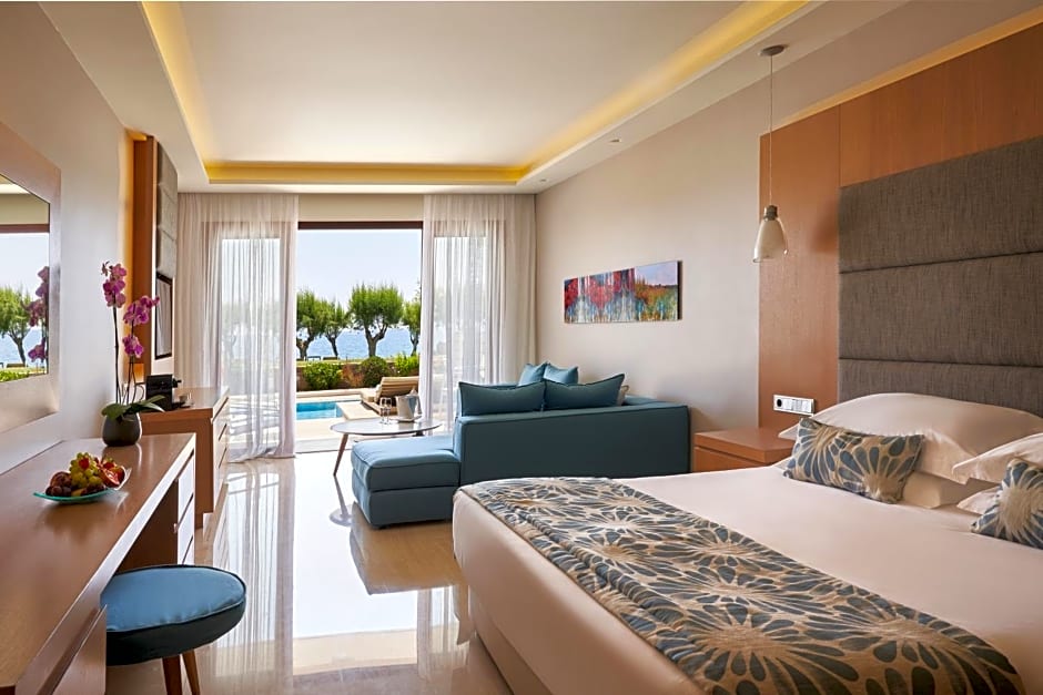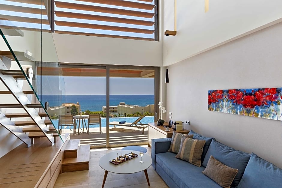 Willkommen im Atlantica Imperial Resort - Adults Only, einem luxuriösen 5-Sterne-Zufluchtsort im sonnenverwöhnten Paradies von Kolýmpia, Griechenland. Nur einen Katzensprung von den unberührten Stränden von Rhodos entfernt, ist dieses atemberaubende Resort ideal für einen romantischen Kurzurlaub oder eine Erholungspause. Mit Preisen ab einem verlockenden Tarif können Sie sich verwöhnen lassen, ohne Ihr Budget zu sprengen. Genießen Sie das ultimative Stranderlebnis mit weichem Sand unter den Füßen und der erfrischenden mediterranen Brise im Haar!