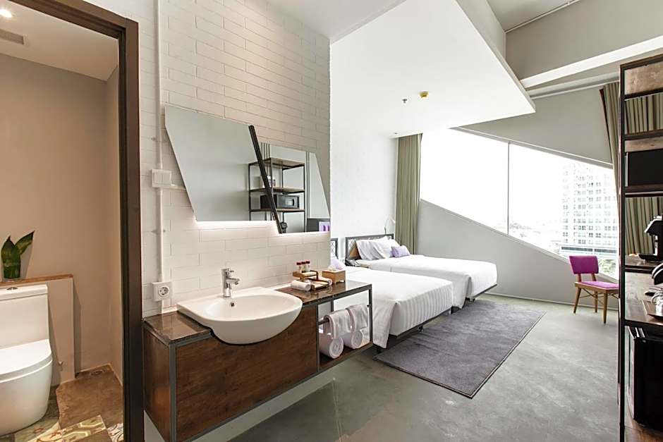 Dining is anchored by Sae, a modern restaurant serving American and Asian cuisines, complemented by a stylish on-site bar. The outdoor pool offers a refreshing option with a view, perfect after a day exploring Bandung. Family-friendly touches include a kid-friendly buffet and kids’ meals (extra charges), plus beach chairs and loungers by the pool.