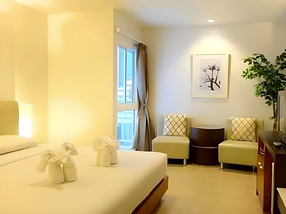 Der Außenpool lädt zu einer erfrischenden Abkühlung ein, und vergessen Sie nicht, die ruhige Aussicht vom Poolbereich aus zu genießen. Stellen Sie sich vor, Sie liegen auf einer Sonnenliege, Cocktail in der Hand, während Palmenblätter im sanften Wind tanzen – purer Himmel auf Erden! Ruft das Abenteuer, verlassen Sie das Hotel und erkunden Sie das lebhafte Pattaya: von geschäftigen Märkten bis zu strahlenden Stränden, oder stürzen Sie sich in aufregende Wassersportarten. Nach einem Tag voller Wunder kehren Sie in die Ruhe des Hotels zurück und entspannen in den üppigen Gartenanlagen – ein perfekter Rückzugsort nach Ihren Erkundungen.