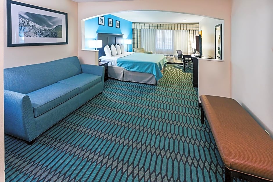 Nach einem Tag voller Erkundungen ziehen Sie sich in den Komfort des Country Inn & Suites zurück, wo Sie aus einer Vielzahl von geräumigen Unterkünften wählen können, die Ihren Reisebedürfnissen entsprechen. Familien und größere Gruppen können sich für die Suite mit 1 Schlafzimmer entscheiden, die perfekt für bis zu 8 Erwachsene und 5 Kinder ist und ausreichend Platz bietet, damit sich jeder entspannen und erholen kann. Bevorzugen Sie etwas Gemütlicheres? Die King Suite mit einem Schlafsofa bietet die perfekte Mischung aus Komfort und Funktionalität für kleine Familien oder Paare. Mit modernen Möbeln und durchdachten Details in jedem Zimmer wurde alles so gestaltet, dass Sie sich wie zu Hause fühlen, während Sie von zu Hause weg sind.