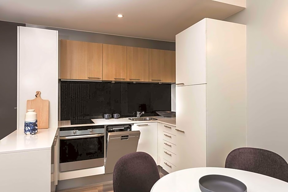 The hotel offers Studio rooms, One-Bedroom Apartments, One Bedroom Premier Apartments, and Two-Bedroom Apartments. Smoking is not allowed in any of the rooms. The Studio rooms accommodate 2 adults with a Queen size bed, while the One-Bedroom and One Bedroom Premier Apartments accommodate 3 adults with a King or Queen size bed. The Two-Bedroom Apartment can accommodate 5 adults with a combination of a sofa bed and two Queen size beds.