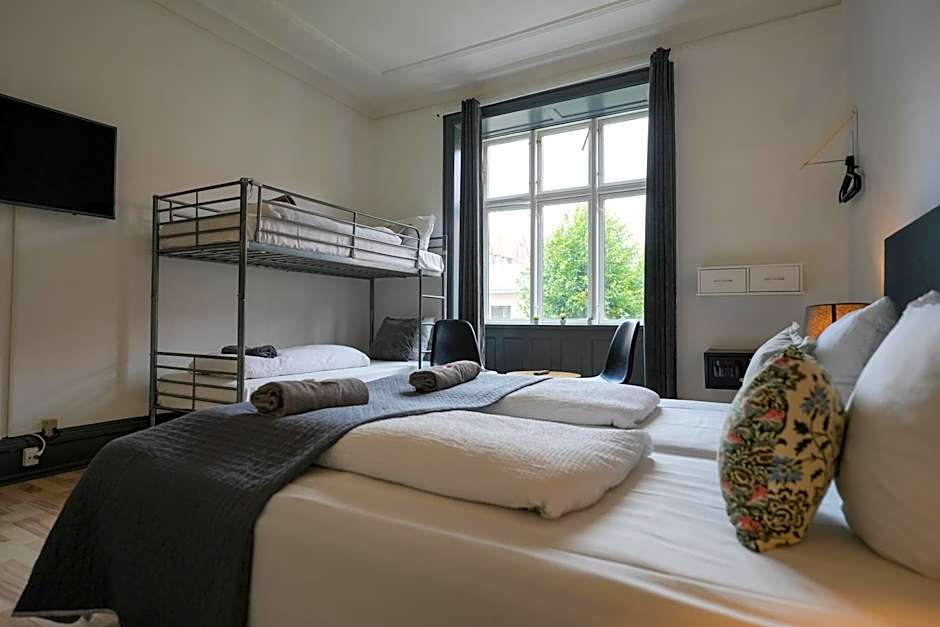 Room options cover a broad spectrum—from compact singles to larger family configurations and multi-bed suites. The lineup includes Standard Room, Standard, Single, Lodge, Junior Suite, and various Family options, accommodating up to eight guests depending on the choice. This makes it a flexible base for solo travelers, couples, and groups exploring Copenhagen together.