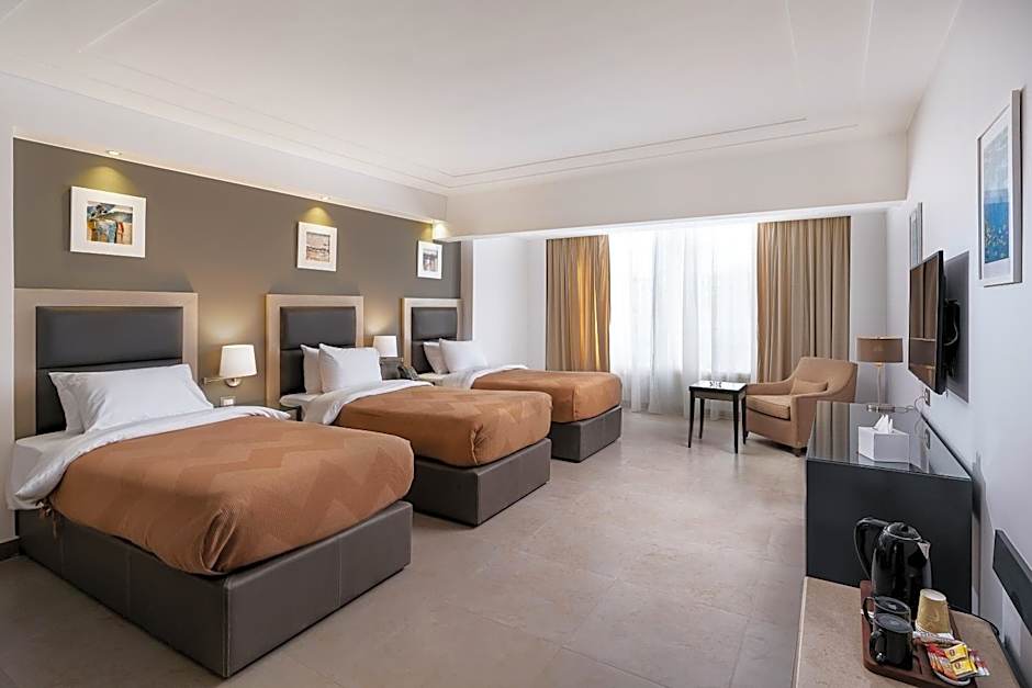 Rhactus Hotel in New Alamein is a 4-star retreat in Al ‘Alamayn, Egypt, located just 1mi from the city center. Address: North Coast, K102 Alexandria - Marsa Matrouh Coastal Road, New Alamein City.