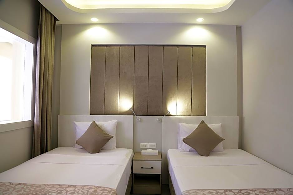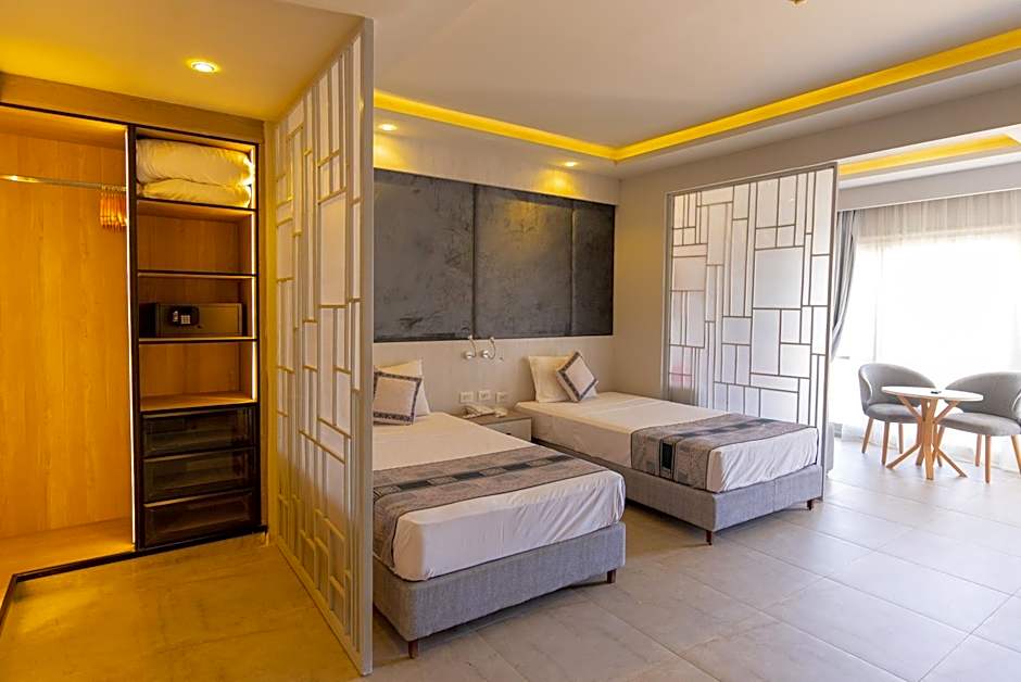 The Aladdin Beach Resort offers a variety of rooms including standard rooms, suites, and deluxe rooms. Occupancy ranges from single to quad occupancy. Rooms may have either a king-sized bed or two double beds, and smoking may be allowed in some room types.