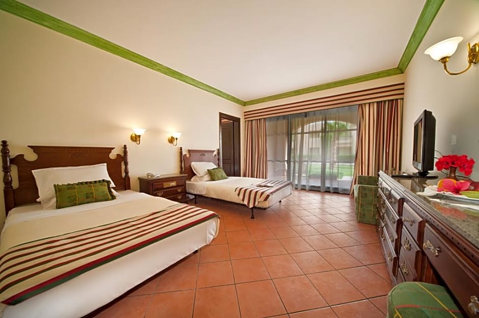 This twin/double room's standout feature is the pool with a view. The spacious twin/double room offers air conditioning, a mini-bar, a terrace with garden views as well as a private bathroom featuring a walk-in shower. The unit offers 3 beds.