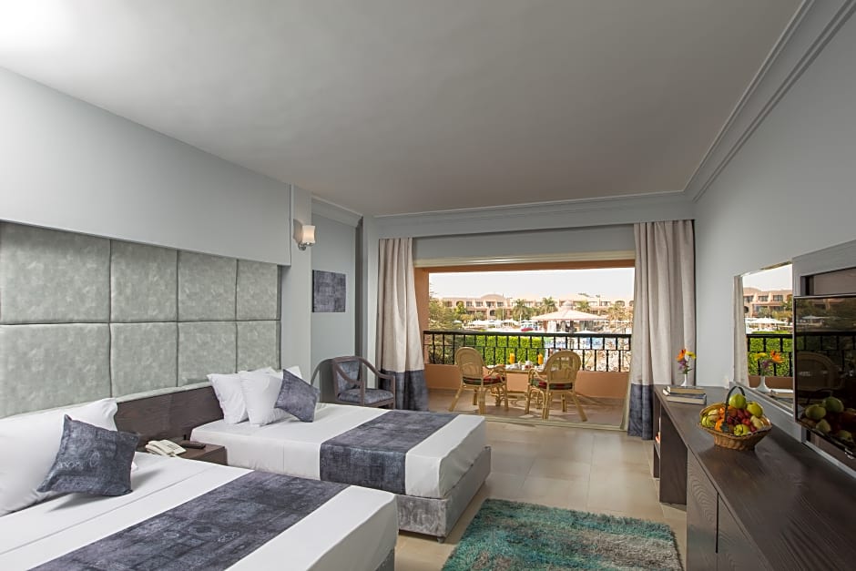 Welcome to Ali Baba Palace Resort, your paradise in the sun, tucked away in beautiful Hurghada, Egypt! This spectacular 4-star resort is just 10,6mi from the bustling city center, making it the perfect retreat to relax and recharge. With a minimum price starting at an unbeatable rate, you'll discover that luxury doesn’t have to break the bank. Situated right along the sparkling shores of the Red Sea on 17 Km Safaga Road, guests can easily indulge in beach bliss, courtesy of the resort’s stunning private beach area.