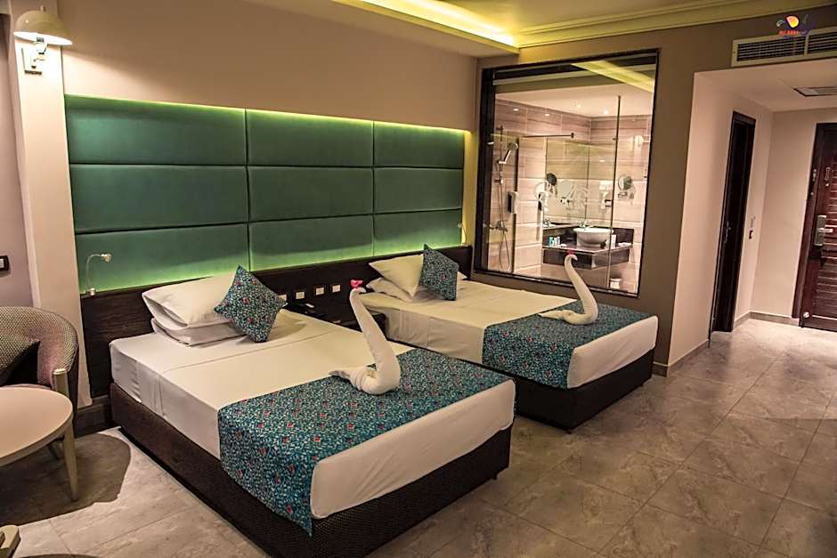 Fun is the name of the game at Ali Baba Palace Resort, where adventures await around every corner! Dive into the excitement of the on-site water park, or take a leisurely dip in the outdoor swimming pool. For the little ones, there’s a fantastic kids' club and a fabulous kids' pool, ensuring everyone has a splash-tastic experience! Engage in an array of thrilling activities like snorkeling or challenge your friends to a game of tennis. After a day of excitement, unwind with a luxurious spa treatment, or take advantage of the sauna and steam room to pamper yourself.