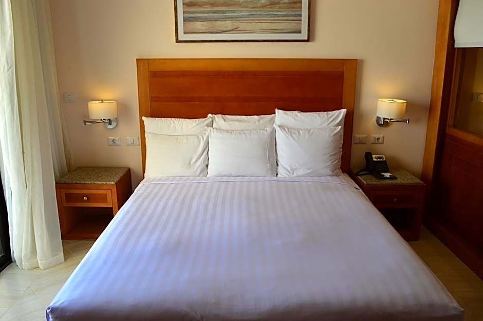 Guests at Sky View Suites Hotel can spend their time enjoying the leisure amenities provided. They can relax on the private beach area or take a dip in the outdoor swimming pool, which also has a separate kids' pool. The hotel offers beach umbrellas and chairs/loungers for guests to use.