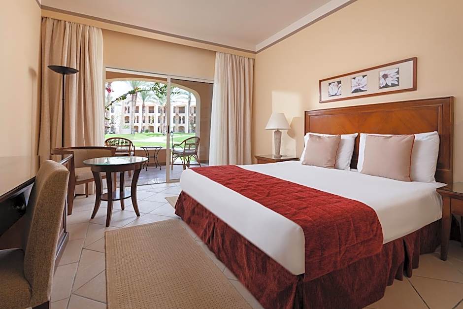 Family, Queen or Twin Bed, Garden View is 463 square feet and includes a double bed 131-150 width plus balcony, terrace, hairdryer, and safe and is Wheelchair-accessible.