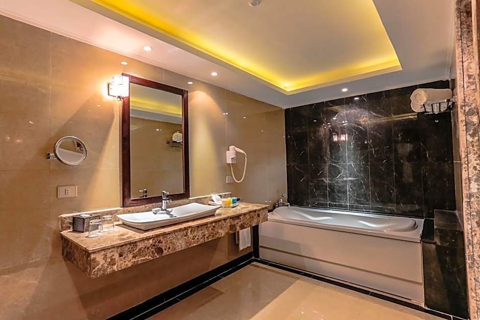 This spacious, air-conditioned suite offers a terrace with a pool view, sharing pool and a living room with a flat-screen TV. The bathroom includes a bath, a spa bath and a shower. Posh Club Privileges: • A-la-carte restaurant reservation (guaranteed reservation in the resorts’ restaurants for all inclusive guest) • Limousine transfer to and from the airport • Express check-In and check-Out at the Suites • Tailored program from a fitness instructor • 15% discount on all services of the Spa and Health center • 20% discount on the Laundry service • 10% discount in the Felucca Fish Restaurant • One private cabana at the beach (once per stay per room free of charge, according to availability; 50% discount on further reservations) •Private Posh Club Lounge only for the Posh Club guests, providing beverage service fresh juices and different kind of cocktails as well as snacks and pastries, bakeries and mini sandwiches during the day (10.00 hours– 18:00 hours For all-inclusive meal plan only) • Fruit basket, cookies and bottle of wine upon check-in and daily replenishment of the hotel delights • Mini bar is refilled daily with soft-drinks Access to the Posh Club Lounge: • Enjoy a Royal Breakfast with sparkling wine, plate of cheese and smoked salmon (at the lounge or a special designated area in the main restaurant) from 07:00 hours– 10:30 hour • Sleep in and enjoy our delicious continental breakfast with three kinds of seasonal fresh fruit juices at the Posh Club Lounge from 10:30 hour – 12:00 hours. No children under 16 years old are allowed.