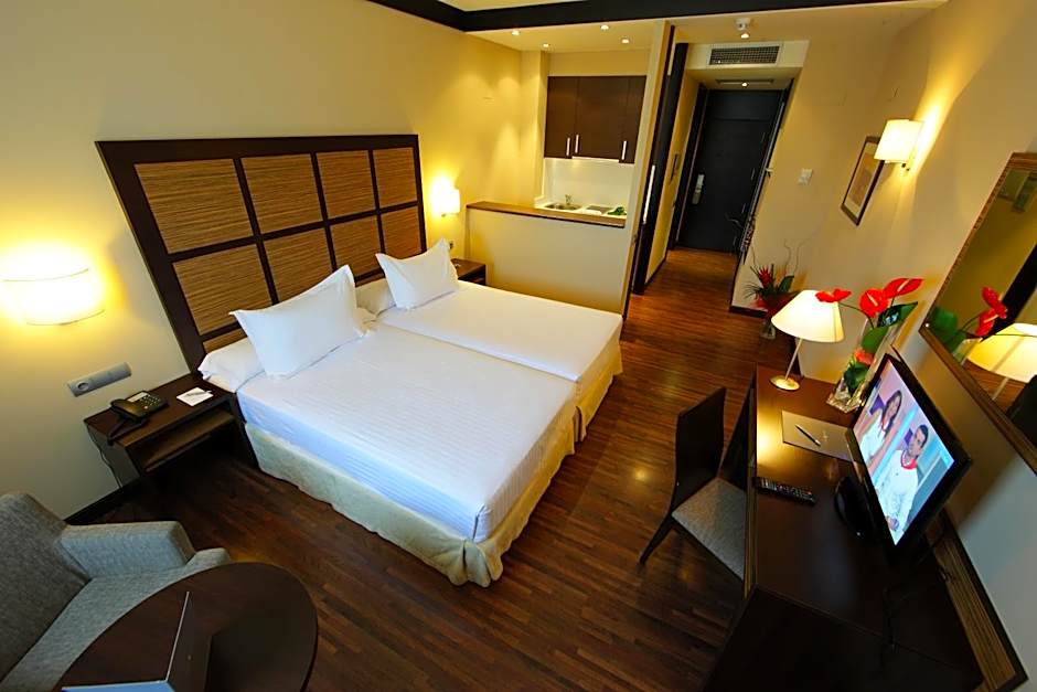 Los bien equipados apartamentos y estudios del hotel son como un hogar lejos de casa, ofreciéndote todas las comodidades que deseas cuando viajas. Con una gama de configuraciones —como el amplio Apartamento Premium de dos dormitorios, capaz de alojar a una pequeña multitud, o el acogedor Estudio para una escapada romántica en pareja— hay algo para todo tipo de viajero. ¿Te apetece preparar una cena especial? Las opciones de cocina y kitchenette te permiten elaborar tus platos a tu ritmo mientras disfrutas del tiempo de calidad en tu elegante espacio. Imagina degustar tu comida casera en el solárium bajo el hermoso cielo español.
