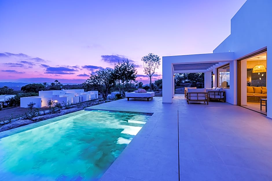 La propiedad ofrece una variedad de residencias tipo villa, incluidas opciones con jardines privados y piscinas privadas, algunas con capacidad para hasta 20 adultos. La oferta también incluye suites y distribuciones pensadas para familias para adaptarse a diferentes planes de viaje. Respaldado por 63 reseñas, este refugio en Sant Rafel es un escape isleño de cinco estrellas donde la vida en estilo villa se une a comodidades de primer nivel en un tranquilo entorno rural.