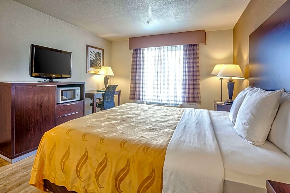 El Quality Inn también hace que tu estancia sea sin complicaciones con características como estacionamiento gratuito, una recepción abierta las 24 horas y habitaciones para no fumadores. Después de un día de exploración, relájate en la comodidad de habitaciones con aire acondicionado equipadas con artículos de tocador gratuitos. Ya sea que te estés preparando para la emoción en Six Flags o disfrutando de una cata de vinos en Napa, ¡este hotel sirve como un campamento base idílico para tus aventuras en California!
