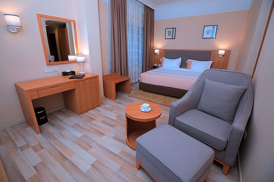 Mado Hotel is a 4-star retreat in Addis Ababa, Ethiopia, tucked on Namibia Street about 3マイル from the city center. Breakfast is offered to start the day, and prices begin at $66 per night.