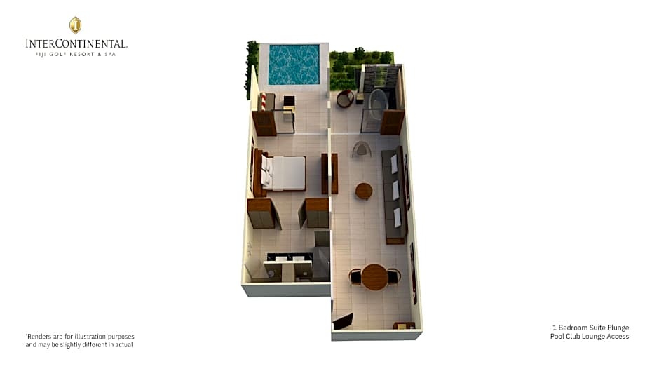 1 Bedroom Suite Plunge Pool Club Lounge Access is 678 square feet and includes a king-size bed 150-183 width plus extra beds on demand, hairdryer, safe, and bathrobes.