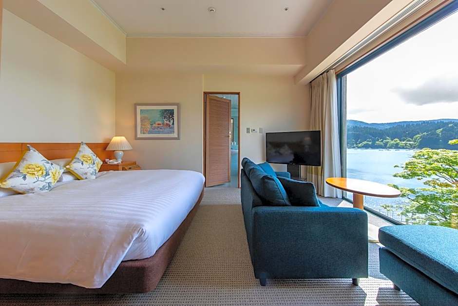 Les chambres répondent à différents points de vue et ambiances, avec de nombreuses options offrant vue sur le lac ou le jardin et un balcon pour profiter du paysage. Parmi les exemples figurent Deluxe, Twin, Lake View (peut accueillir jusqu’à 4 adultes et 3 enfants), ainsi que Superior, Twin, Mountain View, sans oublier les chambres Standard. Pour les groupes plus importants ou une touche de luxe, des Junior Suites avec balcon et vue sur le lac et de vastes Suites sont disponibles, y compris une chambre de style japonais de 948 pieds carrés. Les salles de bains disposent d’articles de toilette gratuits, d’un bidet et d’une baignoire, et un bain thermal gratuit vous attend pour vous détendre après une journée d’exploration à Hakone.