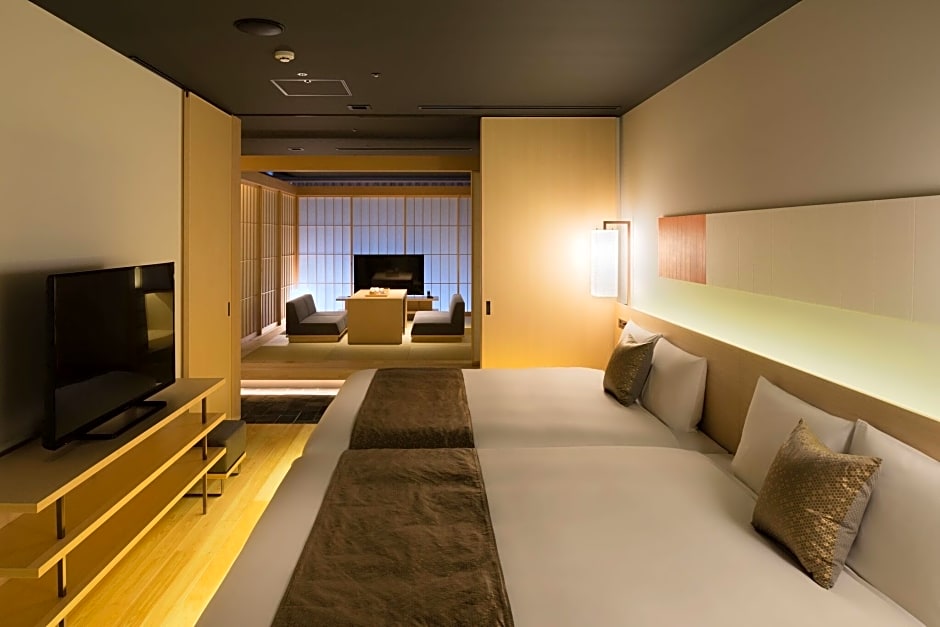 Adresse : 190 Kitamachi Karasuma-Dori Rokujo-Sagaru Shimogyo-Ku. Les équipements et services comprennent : forfaits spa/bien-être, restaurant, Wi-Fi (gratuit), service d'étage, service de streaming (comme Netflix), réception 24h/24, chambres non-fumeur, ascenseur, jardin, balcon, étages supérieurs accessibles par ascenseur, articles de toilette gratuits, bidet, baignoire.